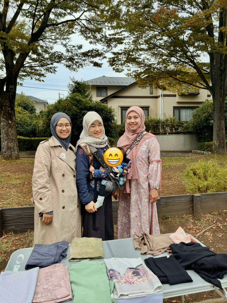 🧕 Hijab Experience (ヒジャブ体験) Ibu-ibu dari Indonesia memperkenalkan cara mengenakan hijab yang digunakan oleh perempuan Muslim. Peserta dapat mencoba langsung.